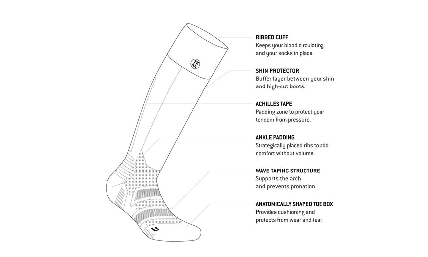 The result is a warm and comfortable knee-high sock, boasting a range of features that will enhance your next ride or run: A cushioned footbed, reinforced heel and toe box, extended ankle protection and additional padding zones on your shins and Achilles tendons.